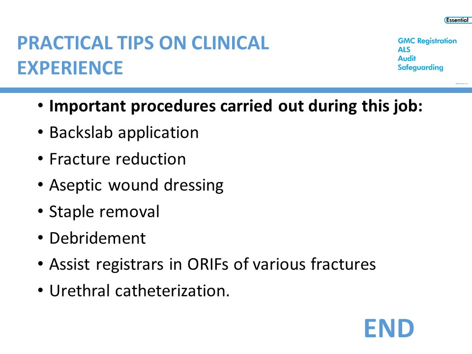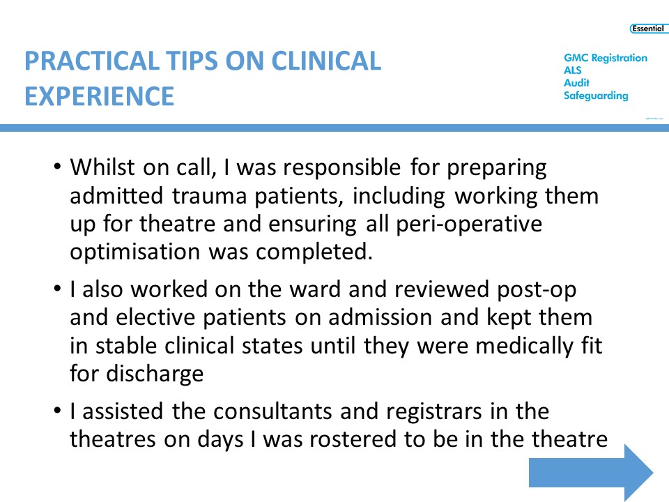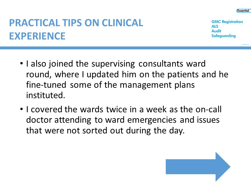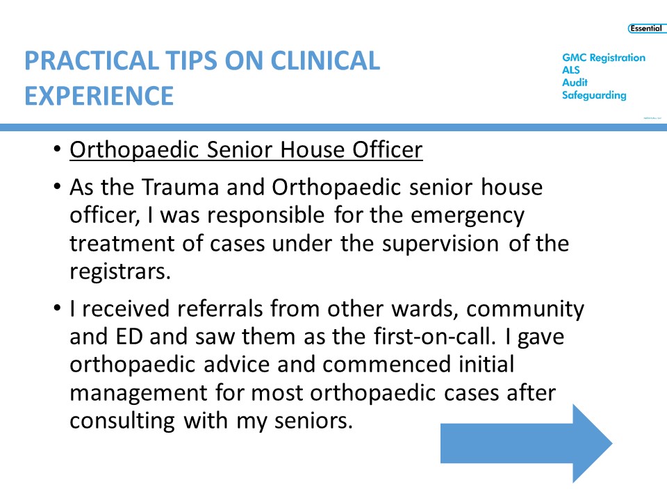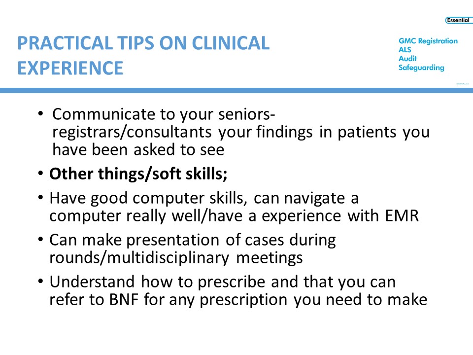 - Courses: having a valid ALS certification (extra points if it is from Resuscitation Council UK) has been shown to significantly improve your chances of getting an interview. Some courses that can be accessed on the e-learning for healthcare can also make you stand out. Completing courses like safeguarding and protecting vulnerable people will show that you are committed to having a grasp of the NHS system and will speak favourably in your applications.