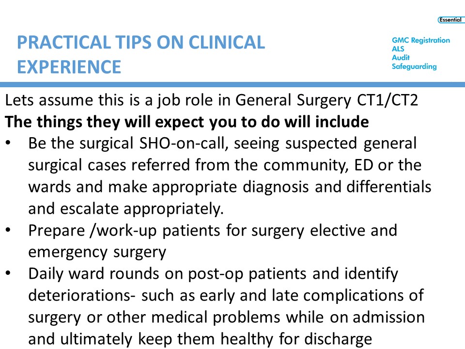 - I have linked a Google document (now a slide show) below to guide your description of your job role, either in a multispeciality private hospital job or a single speciality in a general or teaching hospital.